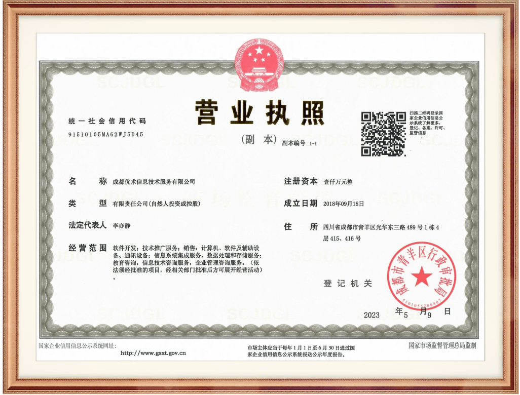 2022年,子公司成都優(yōu)術(shù)信息技術(shù)服務(wù)有限公司獲得“高新技術(shù)企業(yè)”稱號。與千百匠——成都碩昌科技有限公司深度合作,成為其戰(zhàn)略合作伙伴。